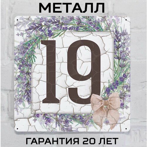 Табличка с номером дома в стиле Прованс с лавандой 19, металл, 25х25 см.