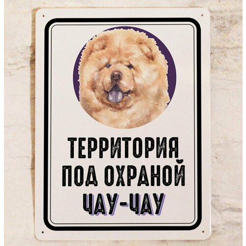 Металлическая табличка на забор Территория под охраной Чау-чау, осторожно злая собака, металл, 20х30см.