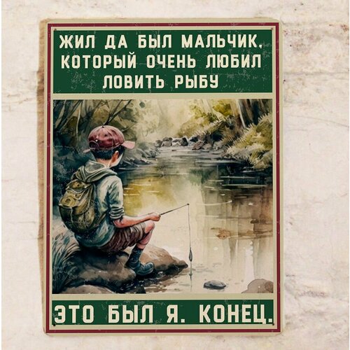 Подарок рыбаку: табличка жил был мальчик, который любил ловить рыбу, металл, 20х30 см.