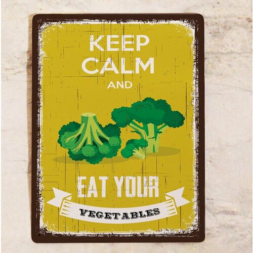 Табличка Овощи и брокколи для декора кухни, металл, 20х30 см.