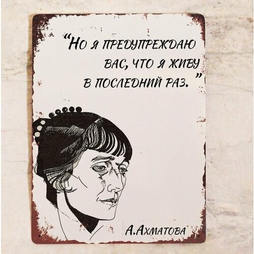 Металлическая табличка с цитатой Анны Ахматовой, металл, 20х30 см.