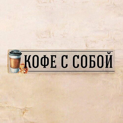 Табличка кофе с собой уличная, металл, 52х12 см.