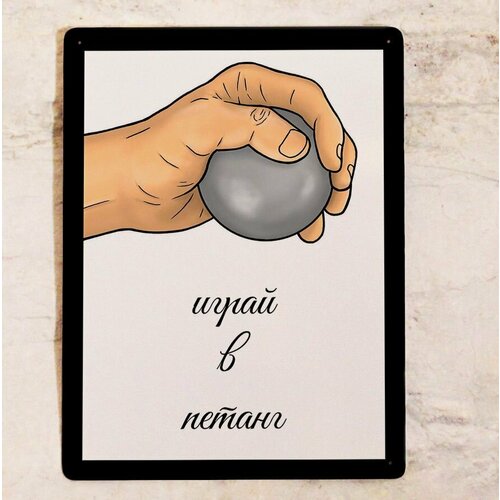 Оригинальная жестяная табличка Играй в Петангдля тематического декора, металл, 20х30см.