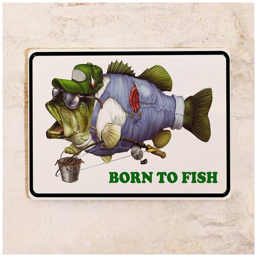 Жестяная табличка Рожден для рыбалки в подарок рыбаку на новый год и день рождения, металл, 30Х40 см