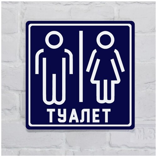 Табличка на дверь туалета (общий) WC синяя, пластик с готовым креплением, 20х20 см.