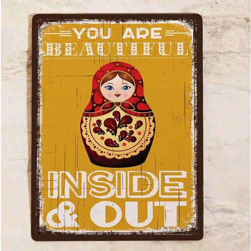 Стильная картина на металле с надписью Ты прекрасна внутри и снаружи, металл, 20х30 см.