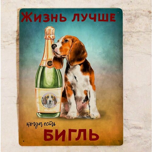 Металлическая табличка Жизнь лучше, когда есть бигль, прикольный подарок владельцу собаки , металл, 20х30см.