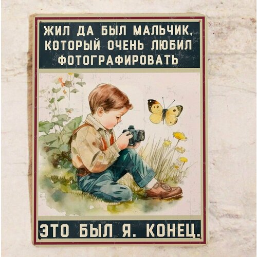 Жестяная табличка Подарок фотографу: жил да был мальчик, который очень любил фотографировать, это был я, металл, 20х30 см.