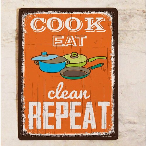 Прикольная табличка для кухни в стиле Ретро Готовь, ешь, убирай, повтори, металл, 20х30 см.