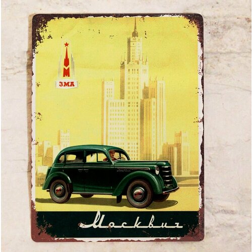 Жестяная табличка для гаража Москвич, cоветский автопром, металл, 20х30 см.