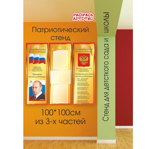 Патриотический информационный стенд Государственные символы 100х100см 3 кармана А4
