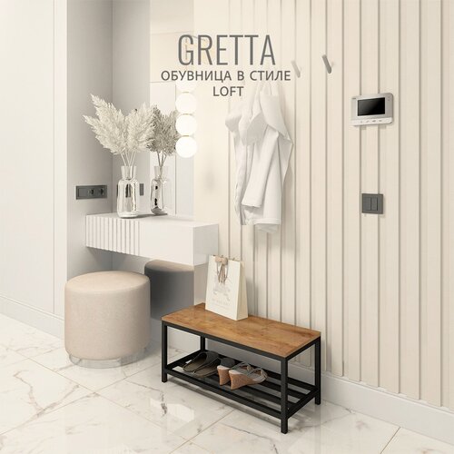Обувница GRETTA loft, банкетка, подставка для обуви, коричневая, 70x30x32 cм, Гростат