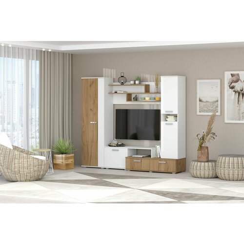 Модульная гостиная "Бери Комп.2", дуб крафт золотой/белое дерево