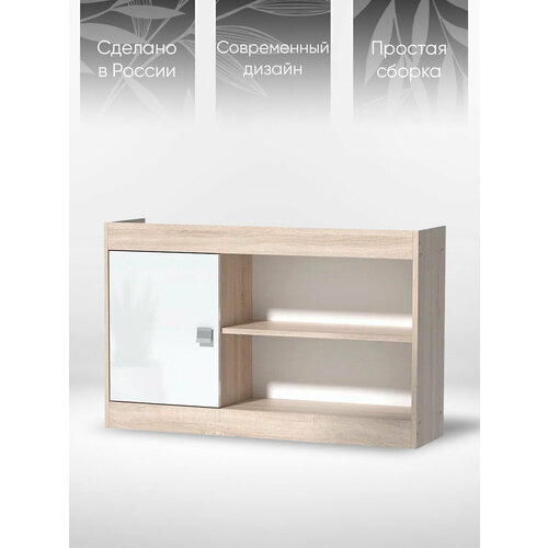 Полка навесная Галактика с ящиком и полками, Дуб сонома/Белый глянец