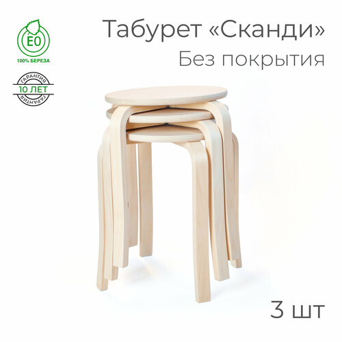 Табурет «Сканди», - 3 шт. (круглый, для кухни, табуретка, деревянный)