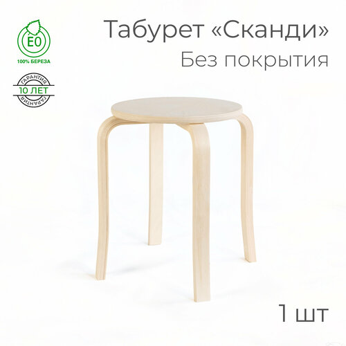 Табурет «Сканди», цвет: прозрачный лак (круглый, для кухни, табуретка, деревянный)