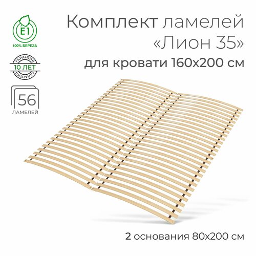 Комплект упругих ламелей "Лион 35", для кровати 160х200 см. (2 основания 80х200 см, бескаркасное кроватное основание, узкие ламели на ленте, реечное дно кровати)
