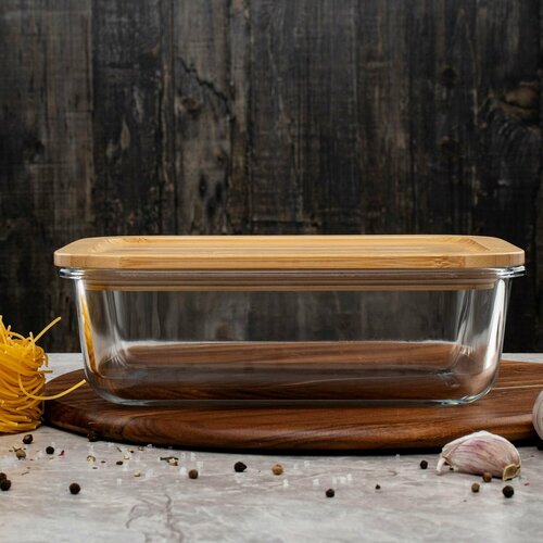 Контейнер для еды стеклянный TalleR TR-38134 1500 мл с бамбуковой крышкой