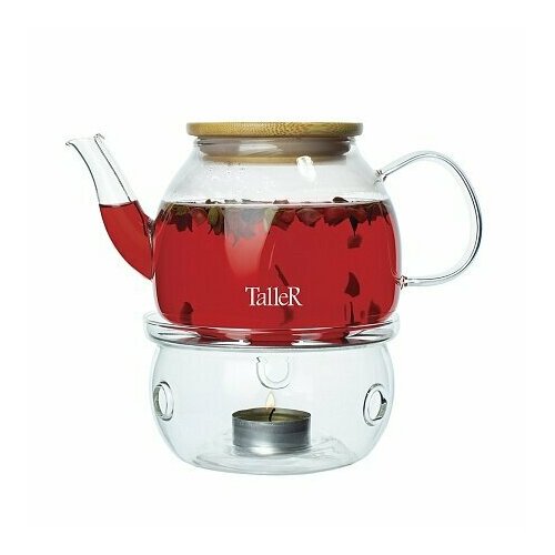 Чайник заварочный TalleR стеклянный, 800 мл с подставкой для подогрева