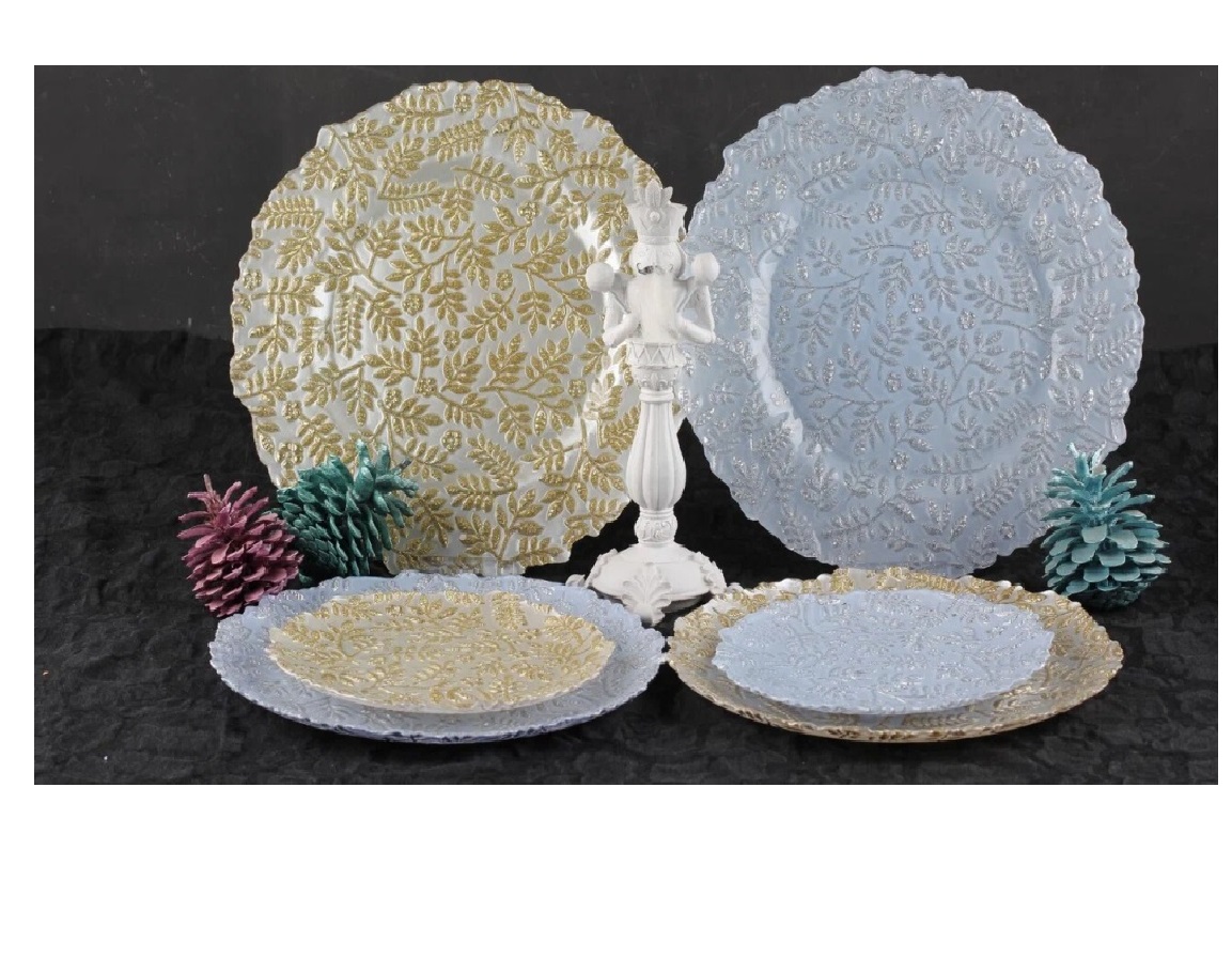 Тарелка сервировочная АКСАМ золотое кружево стеклянная 21 см 17290/G 600014274075