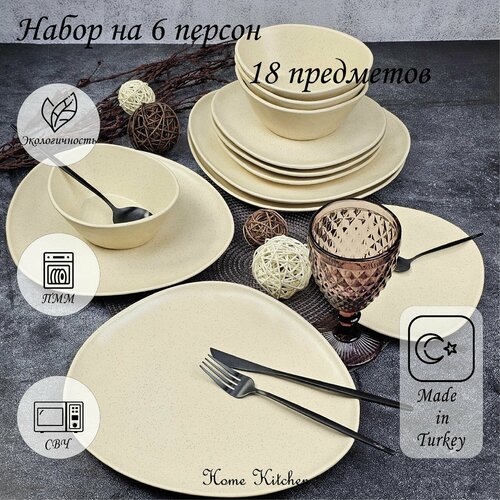 Набор столовой посуды "Органик" на 6 персон (18 предметов), цвет Луна