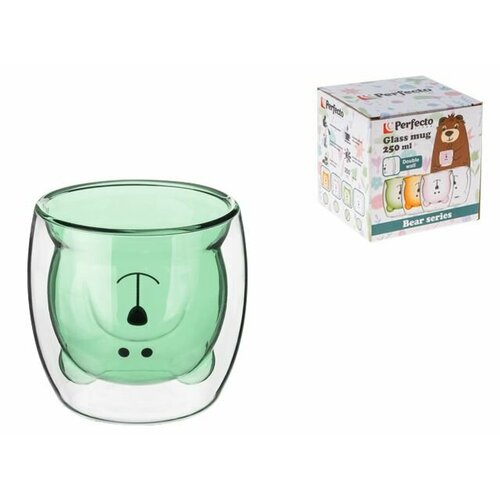 Стакан стеклянный с двойными стенками, 250 мл, зеленый, серия Bear, PERFECTO LINEA (30-125003)