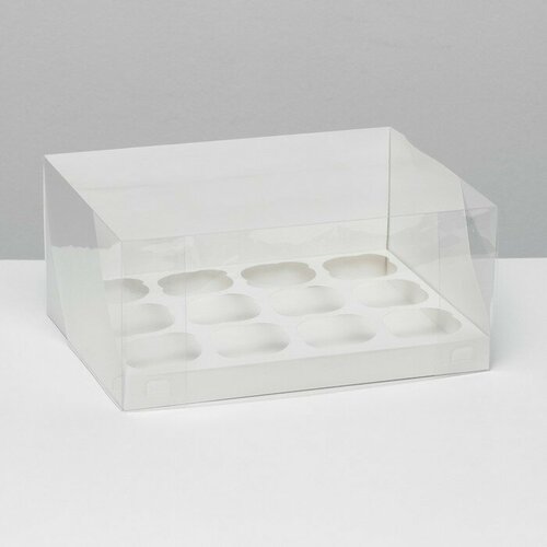 Кондитерская складная коробка для 12 капкейков белая, 31 x 24 x 14 см
