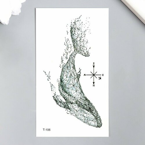 Татуировка на тело чёрная "Кит графичный" 10,5х6 см