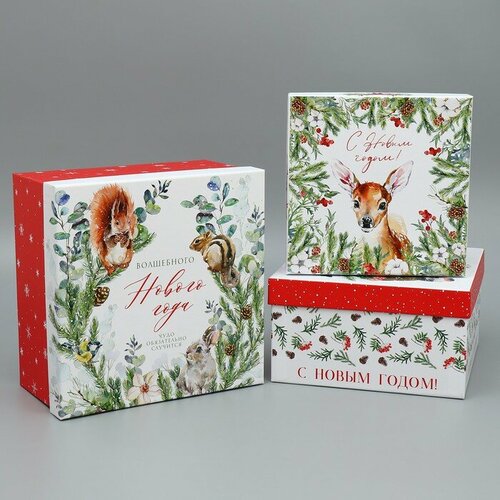 Набор подарочных коробк 3 в 1 «Новогодняя пора», 18 × 18 × 10 – 22 × 22 × 12 см