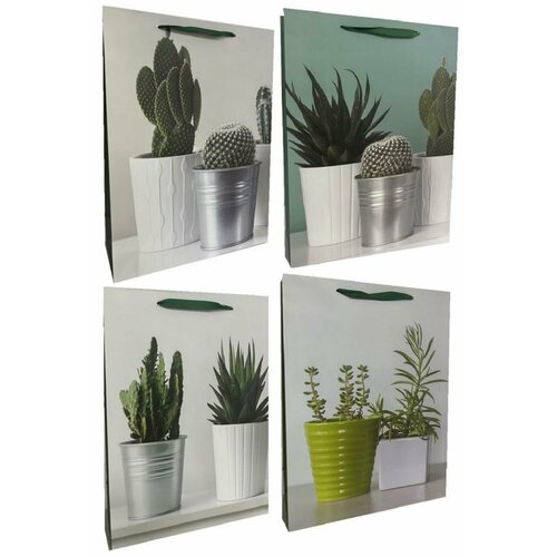 Подарочные пакеты "Суккуленты" (12 шт в наборе) в ассортименте, 31x42x12 см, 4 вида