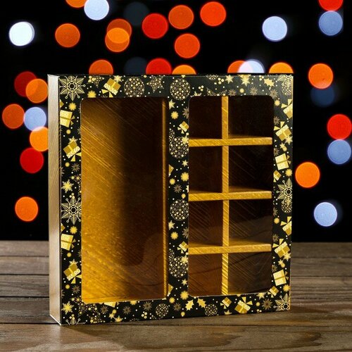 Коробка под 8 конфет + шоколад, с окном, "Олени",17,7 х 17,85 х 3,85 см
