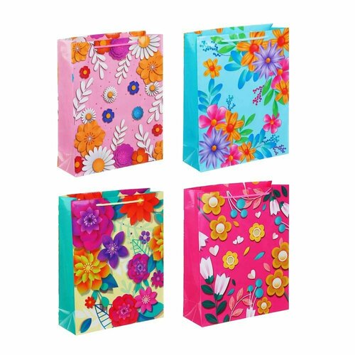 Подарочные пакеты "Розы и тюльпаны" (12 шт в наборе) в ассортименте, 31x42x12 см, 4 вида