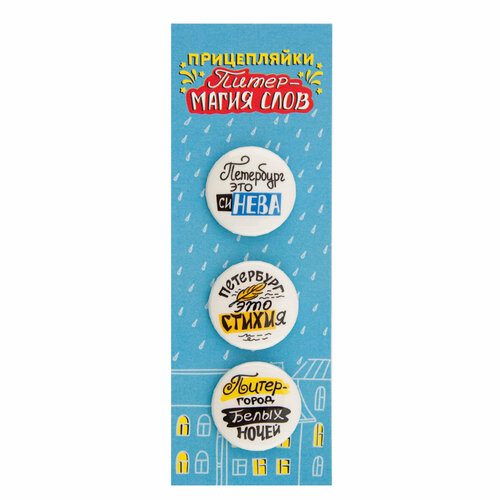 Набор из 3-х значков закатных"Магия слов Петербург это сиНева" 25 мм 031022нз25004