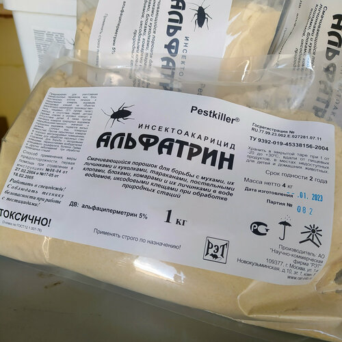 Альфатрин средство от тараканов, клопов, клещей, мух, блох, комаров, муравьев, 1 кг