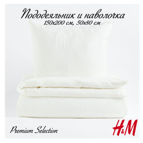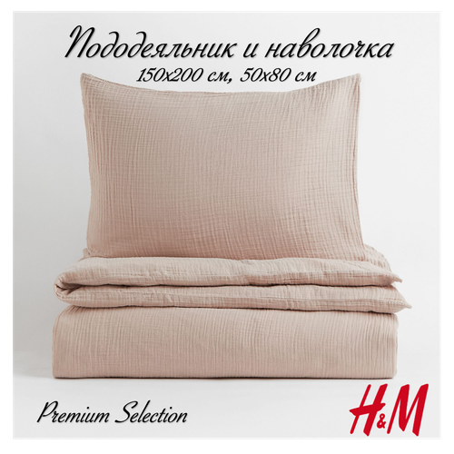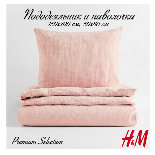 Комплект постельного белья H&M из муслина, пододеяльник и наволочка, 150х200