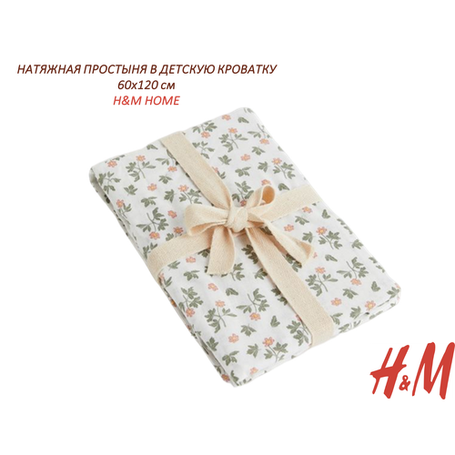 Натяжная простыня H&M HOME, 60х120 см, белый/зеленый