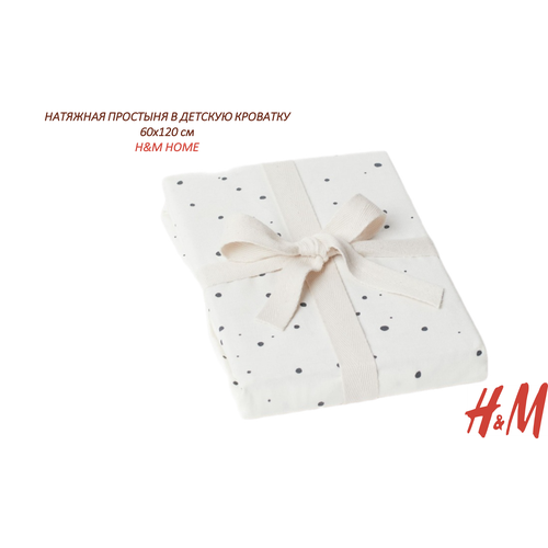 Натяжная простыня H&M HOME в детскую кроватку, 60х120 см, белый/пятнистый темно-серый
