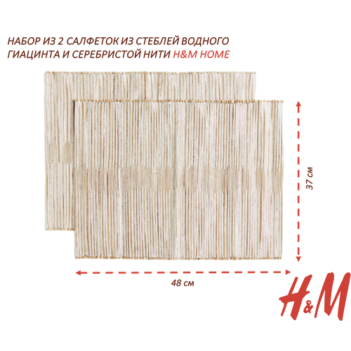 Сервировочные салфетки H&M Home из водного гиацинта и серебристой нити, размеры 37х48 см, набор 2 шт.