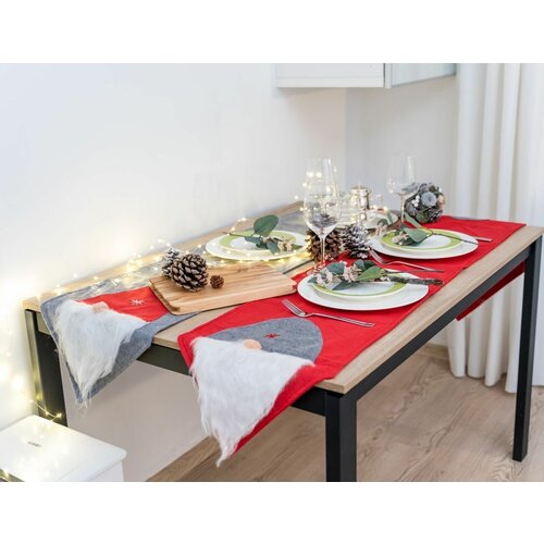 Новогодняя дорожка для стола спящий гном, фетр, красная, 35х180 см, Koopman International
