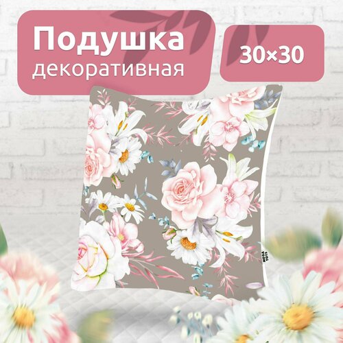 Подушка декоративная на диван для дома MEGA TOYS в подарок с принтом Розы 30x30