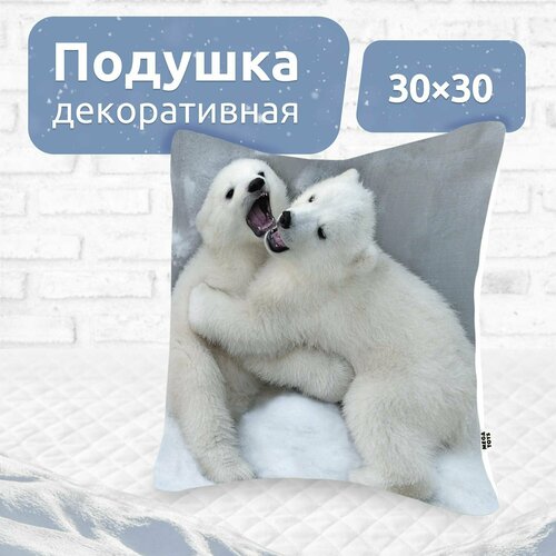 Подушка декоративная на диван для дома MEGA TOYS детская в подарок с принтом 30x30 Белые мишки