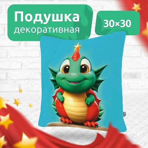 Подушка декоративная на диван для дома MEGA TOYS детская в подарок с принтом 30x30 Дракон со звездой
