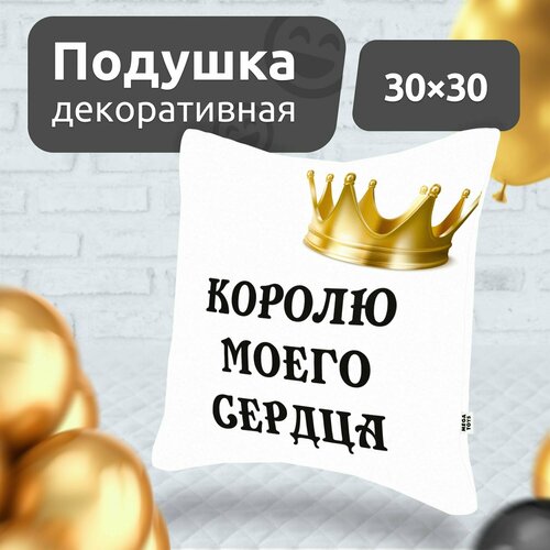 Подушка декоративная на диван для дома MEGA TOYS в подарок с принтом Королю моего сердца 30x30