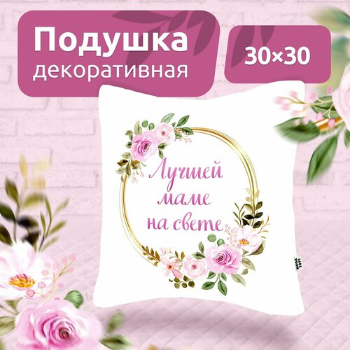 Подушка декоративная на диван для дома MEGA TOYS в подарок с принтом Лучшей маме на свете 30x30