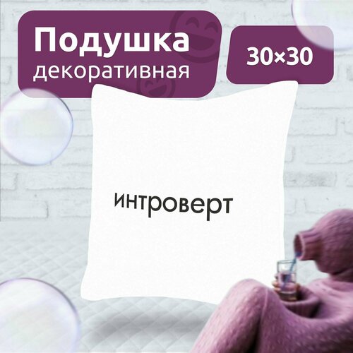 Подушка декоративная на диван для дома MEGA TOYS в подарок с принтом Интроверт 30x30