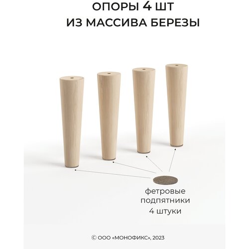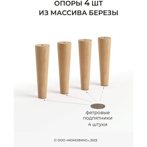 Ножки мебельные деревянные, опоры без шпильки одос, 4 шт, 18 см