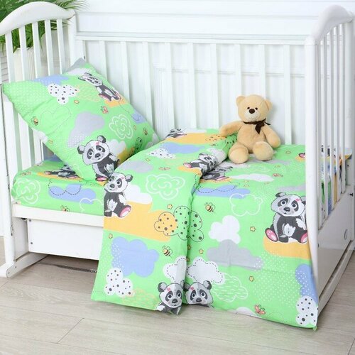 Постельное бельё BABY Панда, цвет зелёный, 112х147см,110х150см, 60х60см, бязь 142гр/м, 100% хлопок