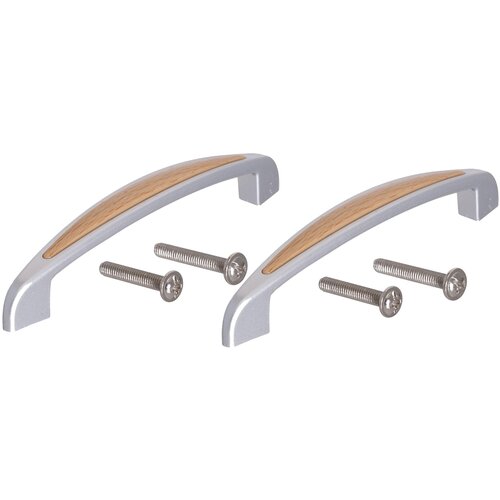 Стильная ручка-скоба, 96 мм, пластиковая с металлическими вставками, цвет дерево, 2 шт, для корпусной мебели в экостиле, в стиле сканди или контемпор