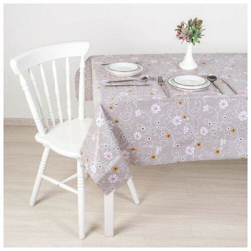 Скатерть столовая на нетканой основе «Ромашки», 137×110 см, цвет коричневый