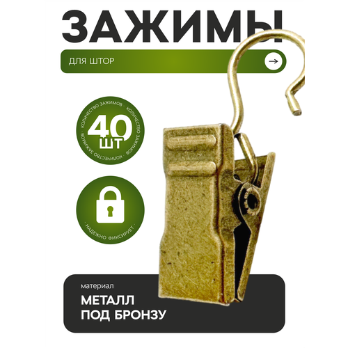 Зажимы крокодильчики для штор крокодильчики, металлические, для колец карниза, набор 40 штук, цвет - золотистый